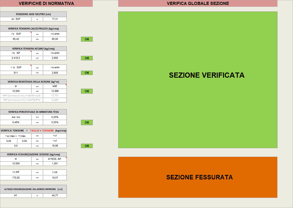 - determina le tensioni nell'acciaio verificando che le stesse siano minori della tensione massima ammissibile;