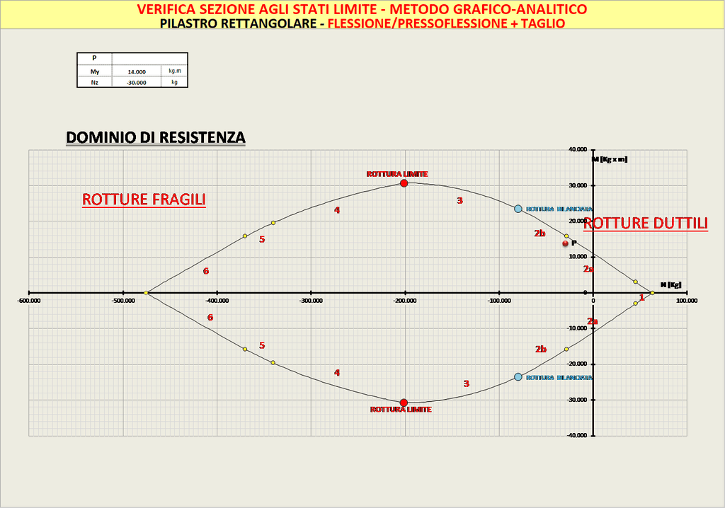 - posizione del punto rappresentativo dello stato tensionale sul Dominio di Resistenza M-N.
