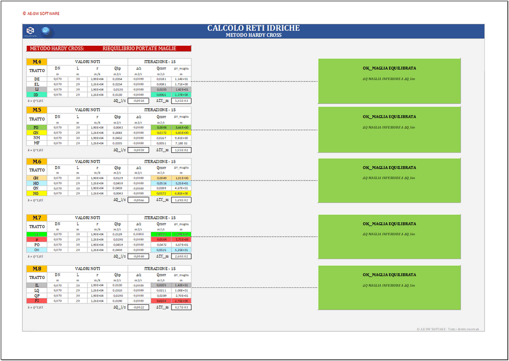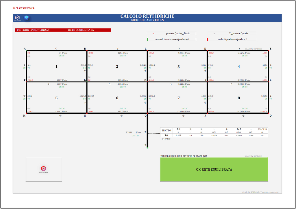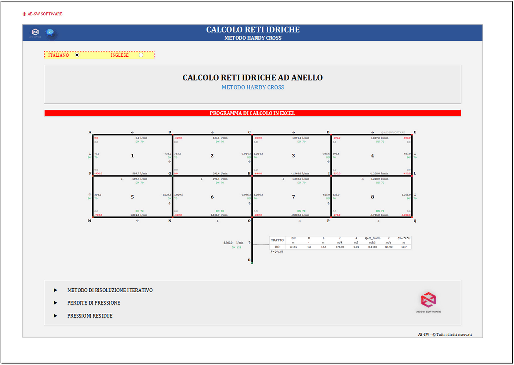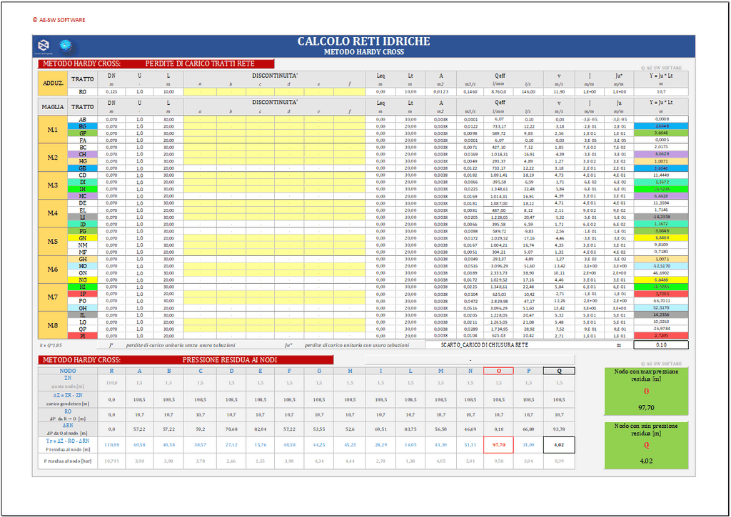 Il programma calcolo reti idriche ad anello in excel consente la risoluzione di reti idriche chiuse mediante il metodo iterativo di Hardy Cross.