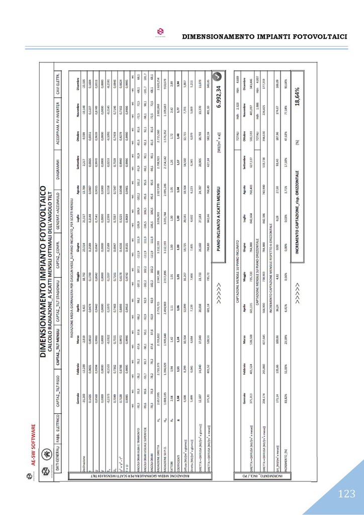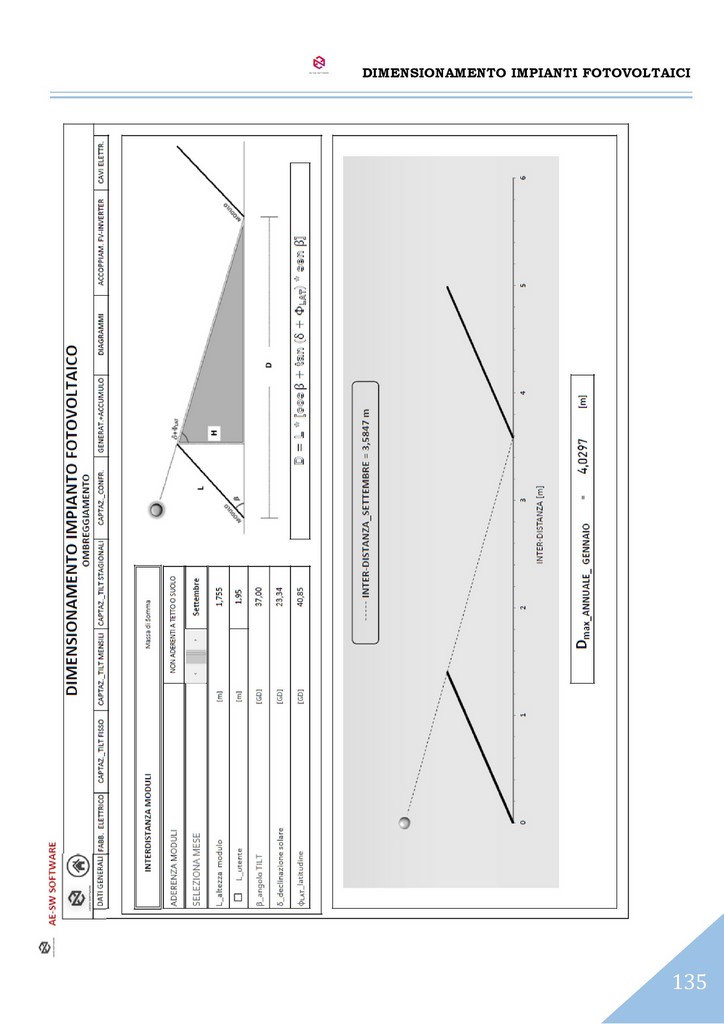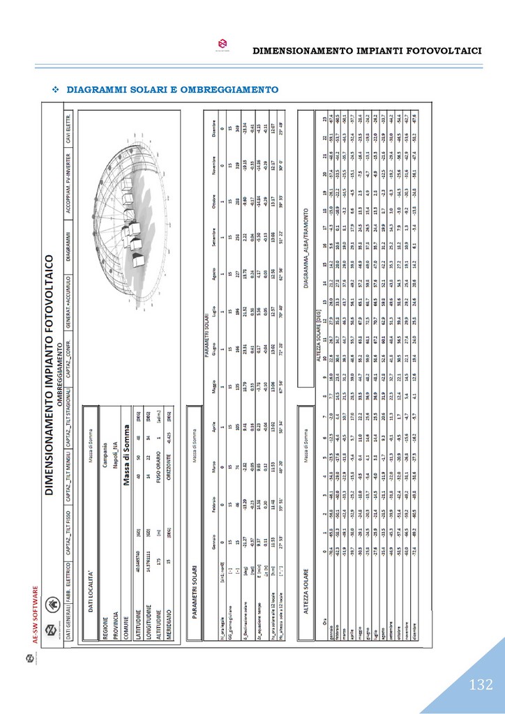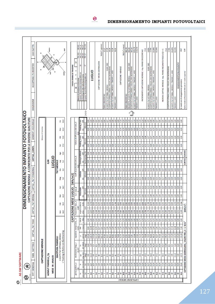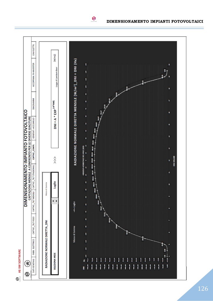Il programma consente di effettuare l’analisi della captazione solare diretta e diffusa sul piano dei moduli secondo le predette giaciture, per ciascun mese dell’anno.
