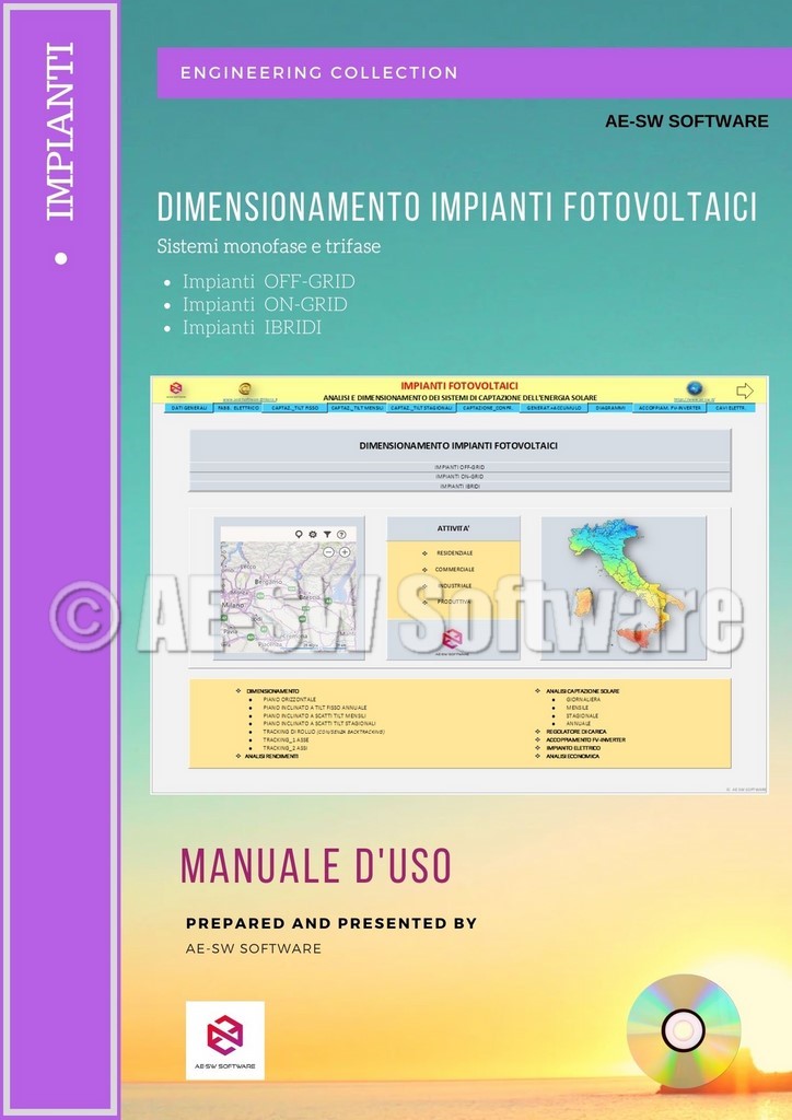 Dimensionamento impianti fotovoltaici monofase e trifase. Impianti off-grid; on-grid; ibridi [cod.: ED06]