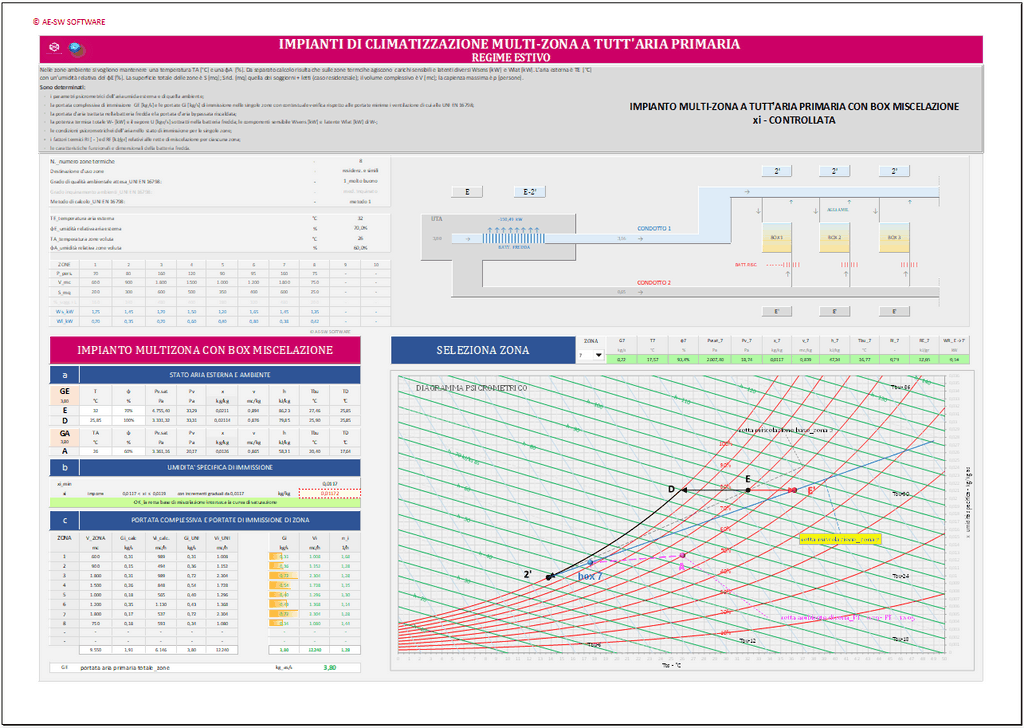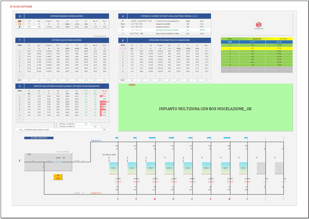 Programma in excel per il dimensionamento di impianti di climatizzazione multi-zona a tutt'aria primaria con box miscelazione di zona. [cod. ED11]